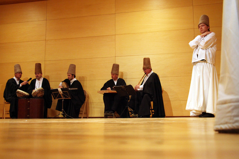 Entrou primeiro a orquestra que tradicionalmente acompanha a sema, nome que designa a dança rodopiante dos dervixes. Seguiram-se os dez intervenientes que, em gestos lentos e silenciosos, se prepararam para a dança. Ao iniciar-se a dança-ritual acompanhada pela música densa e cadenciada, percebemos que o rodopio cada vez mais rápido tem um efeito hipnótico que de algum modo nos contagia. O círculo onde os dançarinos se movem, os movimentos rodopiantes sobre um pé, a forma redonda dos chapéus usados e os movimentos das saias simbolizam a perfeição, a busca do diálogo com a divindade, o desejo de paz e plenitude. Durante o ritual a mão direita dirige-se para o alto em busca da bênção divina e a mão esquerda em direcção ao solo simbolizando a dádiva.