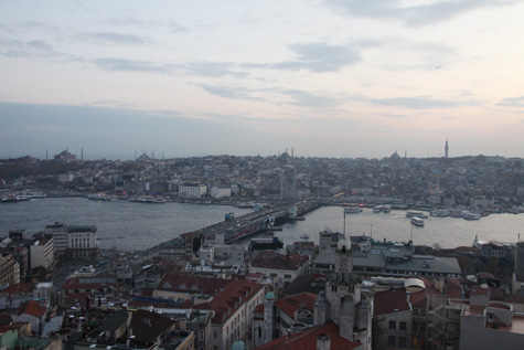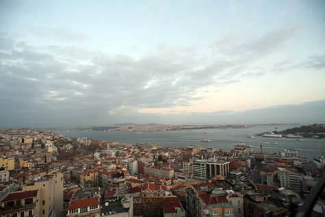A vista panorâmica que se tem é única: a ponte Galata, o Palácio Topkapi, a mesquita Sultan Ahmed (mesquita azul), Hagia Sophia, o mar da Mármara, a coluna de Constantino, o Bósforo …