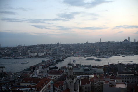 A vista panorâmica que se tem é única: a ponte Galata, o Palácio Topkapi, a mesquita Sultan Ahmed (mesquita azul), Hagia Sophia, o mar da Mármara, a coluna de Constantino, o Bósforo …