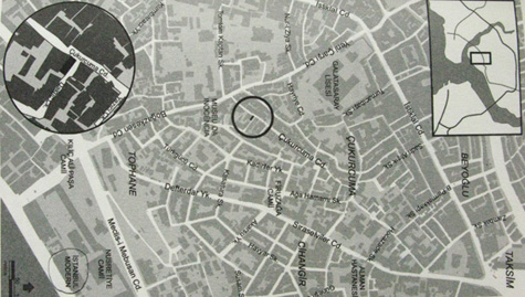 A descrição do percurso e o mapa incluído no livro levaram-nos facilmente ao local. Passámos pelo Hamman (banhos turcos) por onde Kemal tantas vezes passou para ver Fusun.