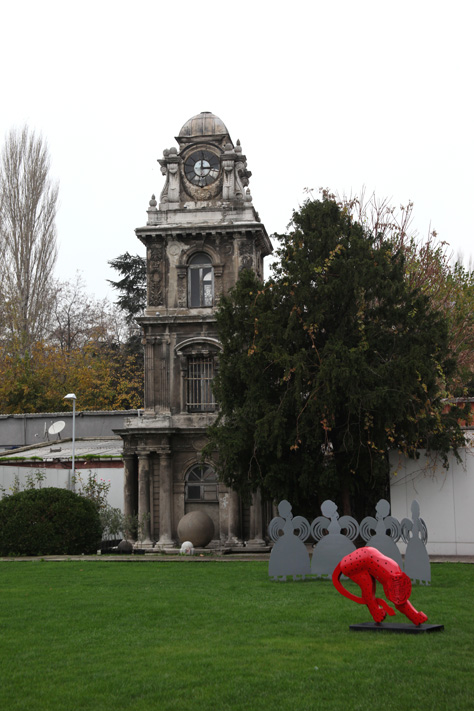 À saída, percorremos as redondezas do edifício que recorda as suas origens. A mistura do antigo e do moderno estava ali bem à vista com os minaretes da mesquita a misturar-se com a coluna vermelha que assinala o museu; uma torre antiga (de quando?) em ruínas convivia com esculturas contemporâneas pousadas na relva.